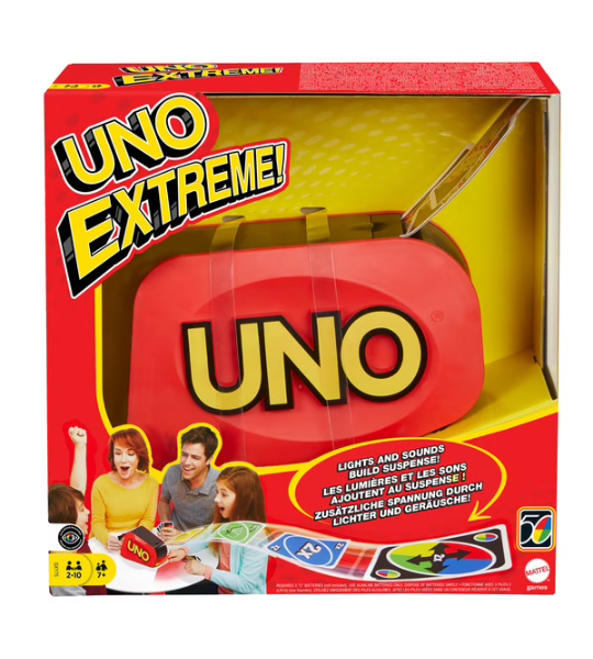 Découvrez le Uno Extreme : Il peut distribuer jusqu’à 8 cartes au moment de la pioche ! Rien n’est jamais gagné !
